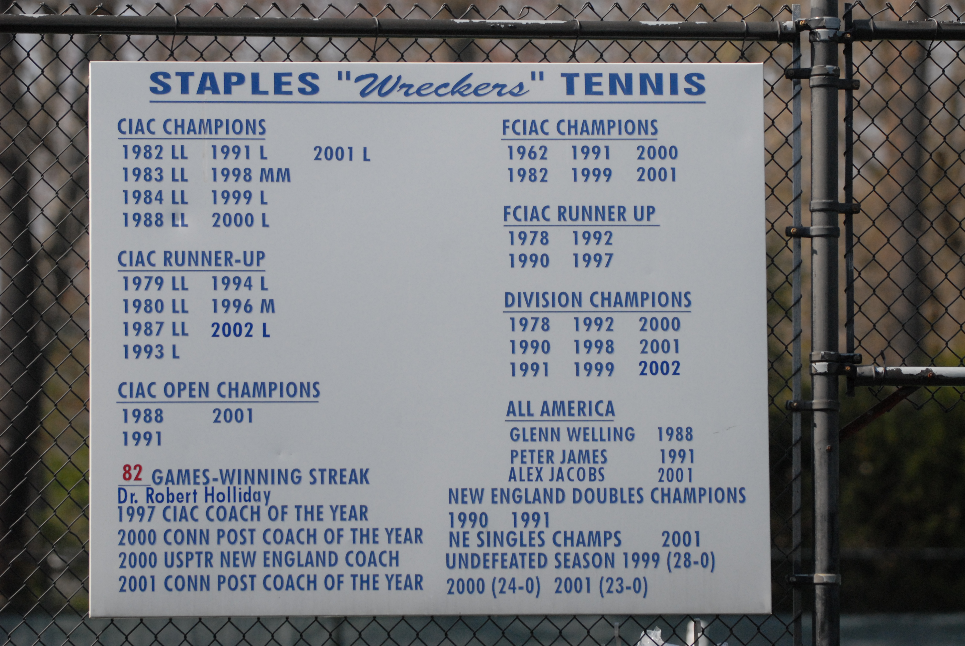 Overall 18-1, FCIAC Western Division 1st place – Regular Season 16-0
